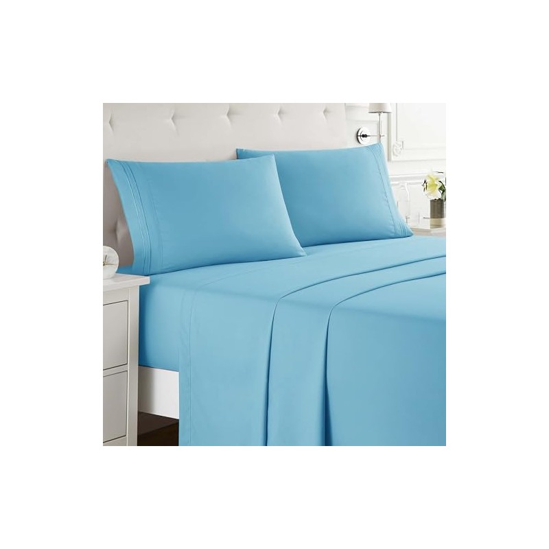 Clara Clark Full XL Bed Sheet Set - Wrinkle, Fade, Stain Resistant, Deep Pocket Sheets - Luxury Soft Bedding Sheets & Pillowcases, Full XL Beach Blue