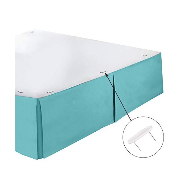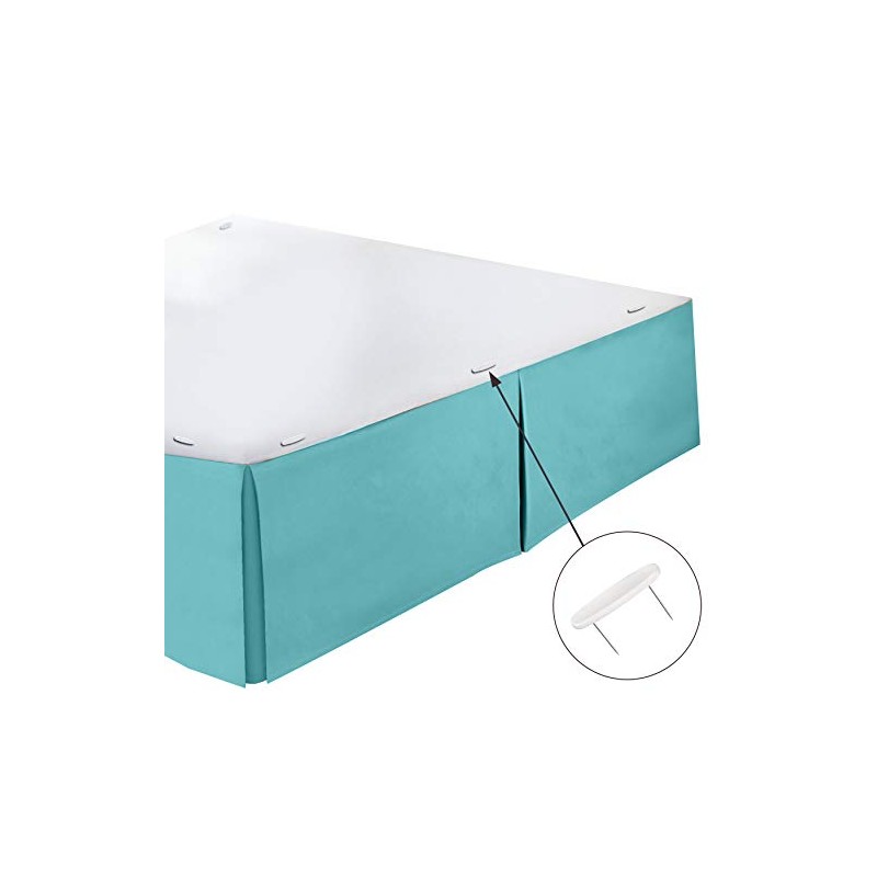 Clara Clark Pleated Bed Skirt-14 inch Tailored Drop Luxury Microfiber Dust Ruffle - Includes 8 Pins, Queen Size, Teal