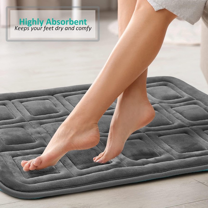 - COMFORTABLE BATHROOM RUGS: Made of velvet fleece and filled with soft memory foam cushioning. these bath rugs feel super comfortable when you step on them.