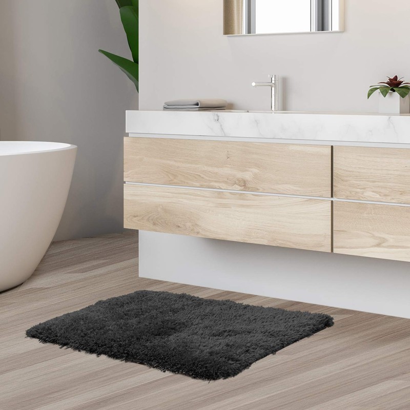 Clara Clark Shaggy Bath Rug with Non-Slip Backing Rubber Super Soft Bathmat, Small-17 x 24, Black