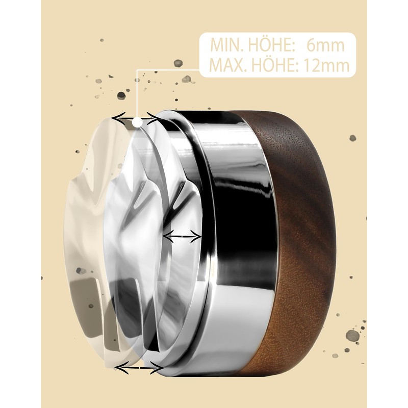 Clara Coffee Distributor for perfect extraction of espresso, coffee distributor in 58.5 mm, for espresso in barista quality, stainless steel and wood (58.5 mm nut)