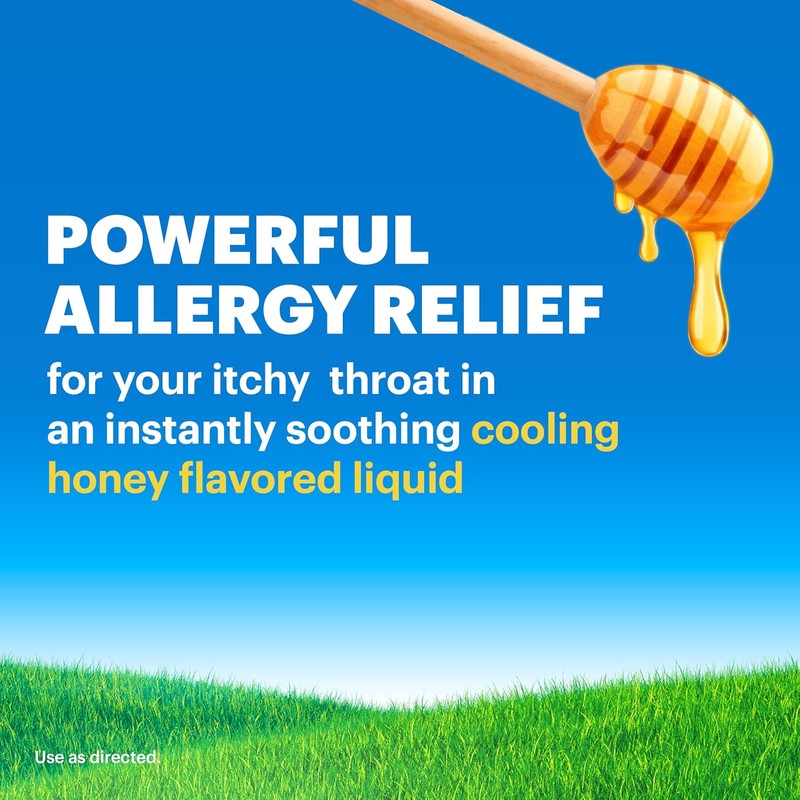Claritin® Cooling Honey Flavored Liquid — powerful Claritin allergy relief in an instantly soothing liquid. This liquid allergy medicine for adults treats common allergy symptoms like sneezing, runny nose, and watery eyes, all while instantly soothing your itchy throat in a cooling honey flavor. Allergies can cause frustration plus discomfort, and an itchy, scratchy throat can be disruptive or embarrassing. Claritin Cooling Honey Flavored Liquid helps you regain your sense of normalcy in a liquid form that is effective, easy to take, and comfortable by providing powerful allergy relief for your itchy throat in an instantly soothing liquid.