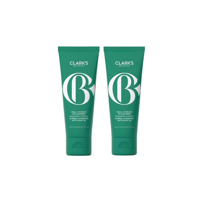 Clark's Botanicals Heal + Hydrate B3 Cleanser, Daily Deep Clean Niacinamide Face Wash with Vitamin C, 4 Oz (Pack of 2)