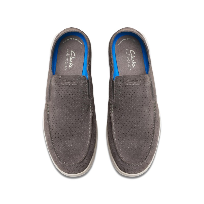 Clarks Men's Flexway Easy Moccasin, Dark Grey Suede, 11