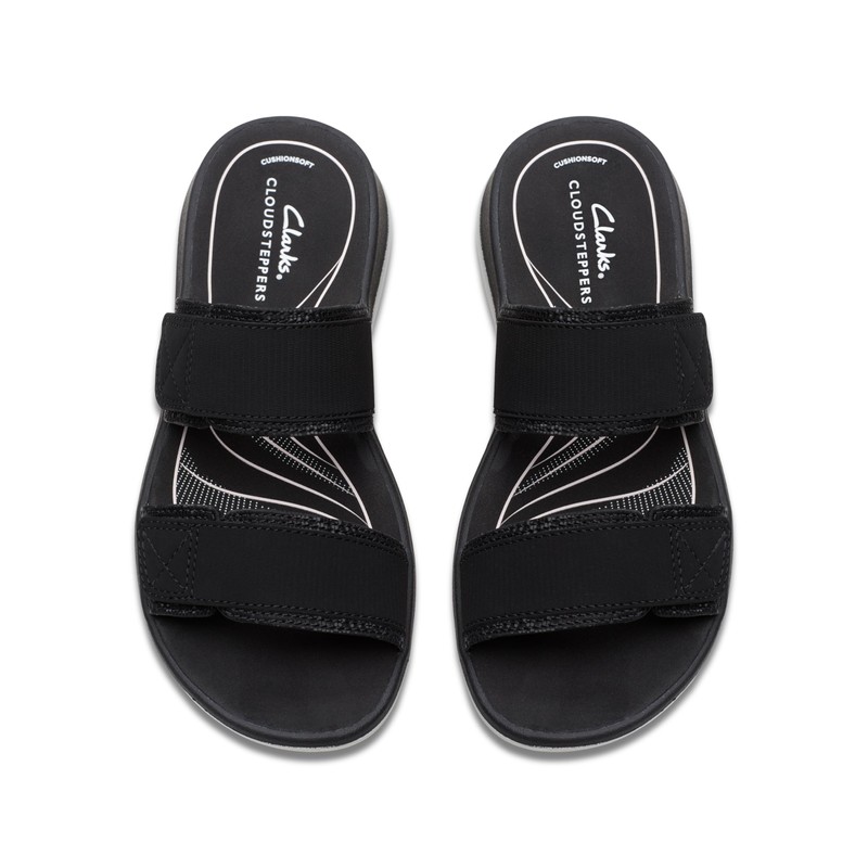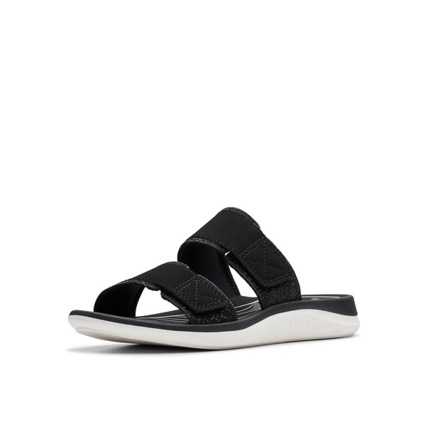 Clarks Women's Glide Joy Slide Sandal, Black Synthetic, 9