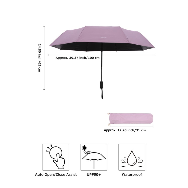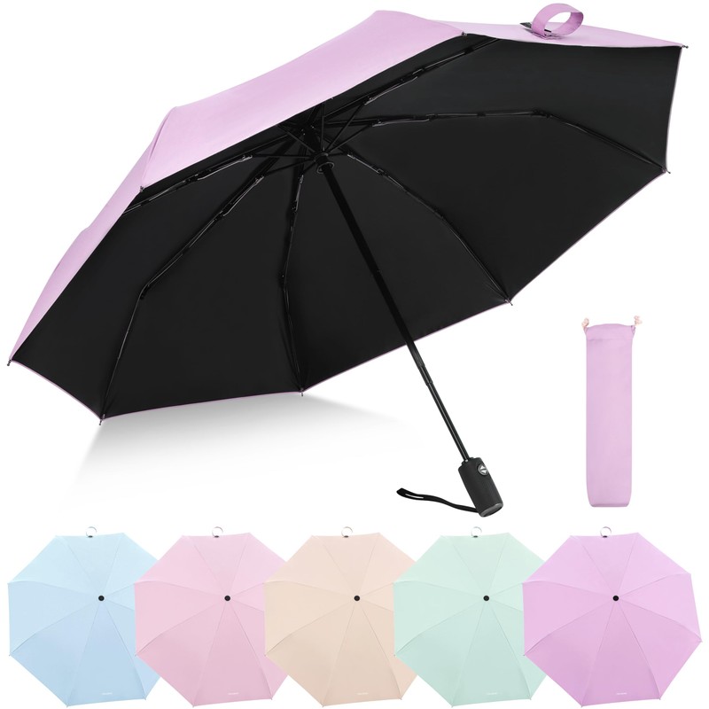 Clarquay Travel Umbrella Compact Umbrella for Women and Men Small Automatic Umbrella with UV and Rain Protection Light Purple