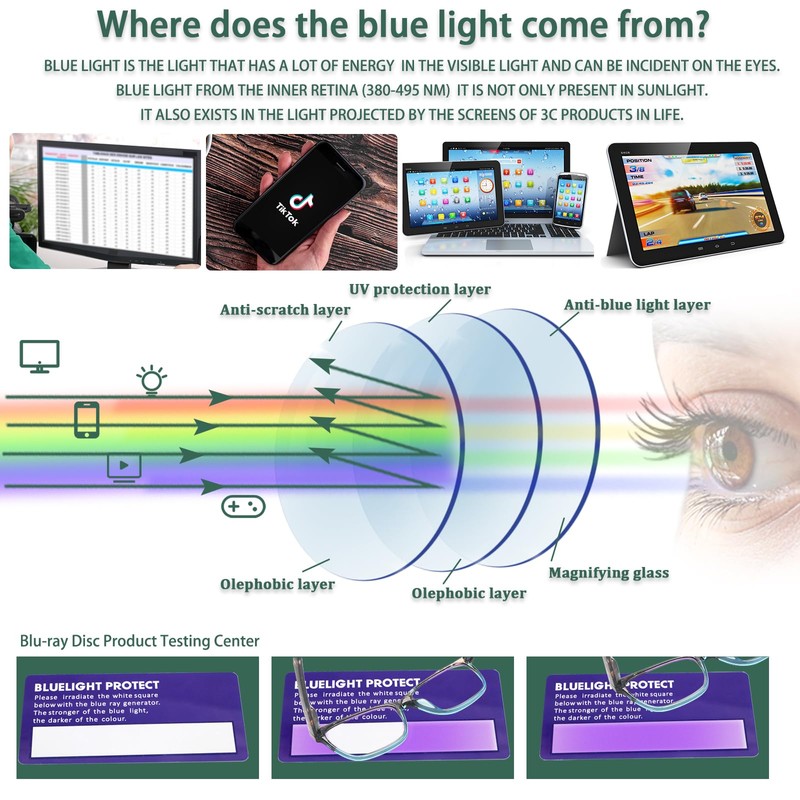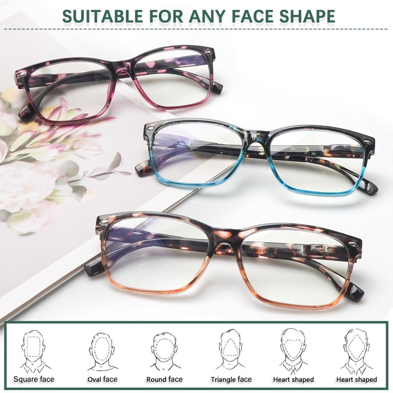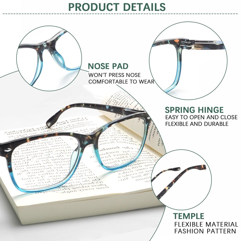 - 【Blue Light Blocker】Our blue light blocking reading glasses can effectively filter harmful blue light from computer or phone screens to protect your eyes, help to relieve your eye tiredness and prevent asthenopia