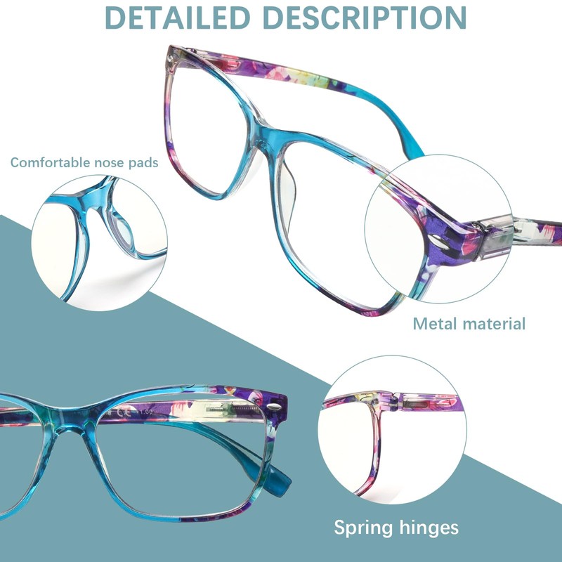 - 【Quality Material】Multifocus reading glasses for women are made from superior plastic lenses and frames with spring hinges. The plastic frame is lighter than metal ones that provide you a more comfortable wearing experience. What's more, spring hinges make these progressive readers adjustable to fit your face and thanks to the built-in nose pads, there is no impression on your nose bridge any more