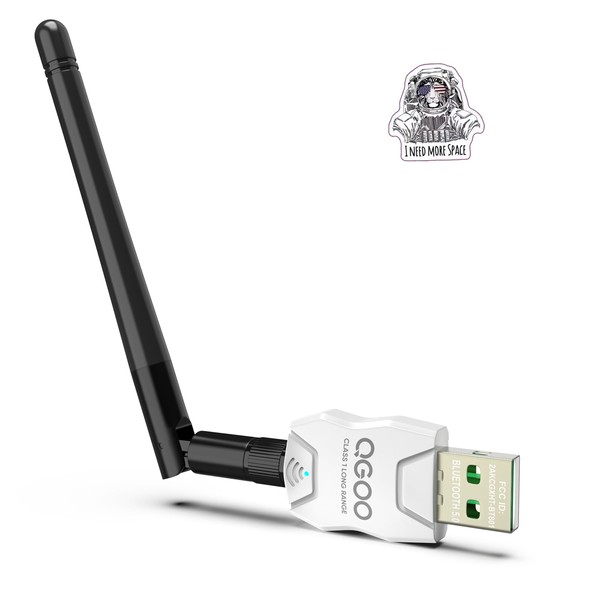 Class 1 Long Range Bluetooth Adapter for PC, QGOO USB Bluetooth Adapter for PC 5.3+EDR, Bluetooth Dongle Bluetooth Receiver Support Windows10/8.1/8/7(white-092)