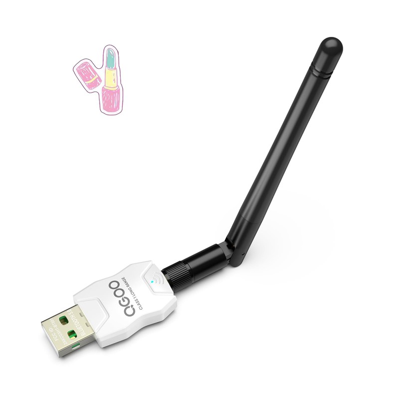 Class 1 Long Range Bluetooth Adapter for PC, QGOO USB Bluetooth Adapter for PC 5.3+EDR, Bluetooth Dongle Bluetooth Receiver Support Windows10/8.1/8/7(white-173)