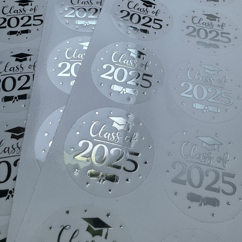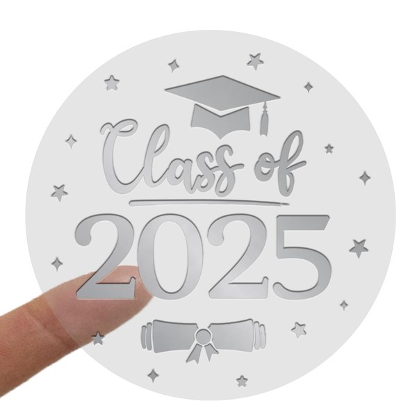 Class of 2025 Graduation Stickers – 100pcs 1.6" Transparent Foil Labels in Gold/Silver/Rose – Ideal for Graduation Cards, Envelopes, Gifts & Party Decorations (Silver)