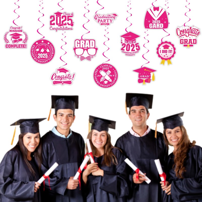 - Package Includes - This set includes 12 counts pink Class of 2025 shapes hanging swirls, and these Graduation themed hanging swirl decors are good choice for 2025 Congrats Grad party decorations.