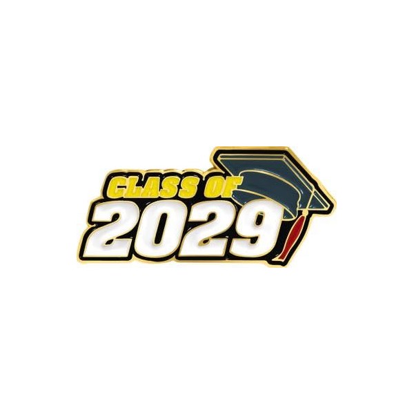 - GOLD ENAMEL PIN: This 2029 Year Pin Displays "Class Of 2029" Boldly In Yellow & White Enamel With A Graduation Cap Detail