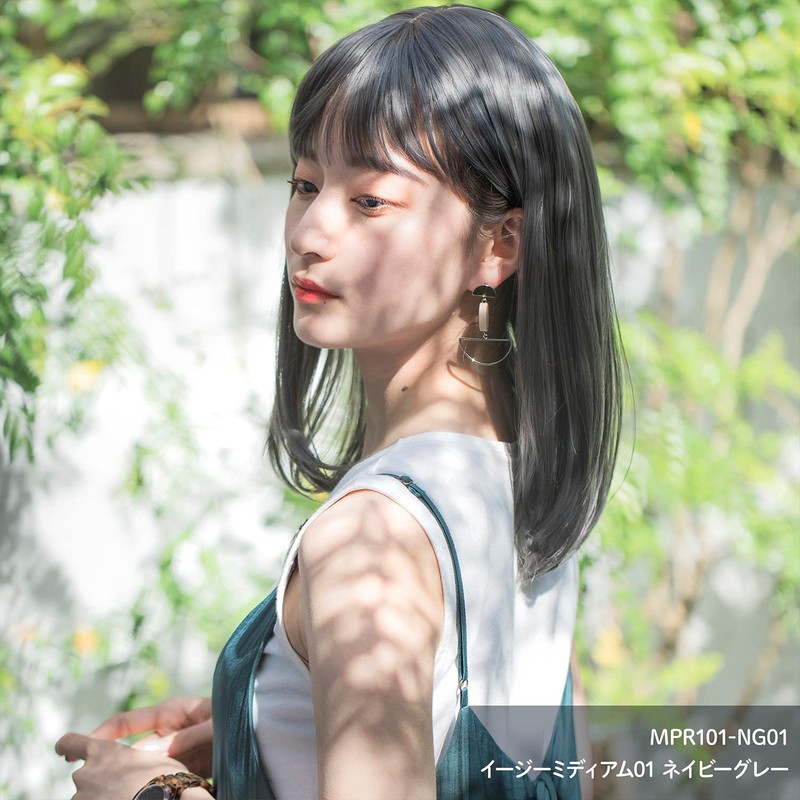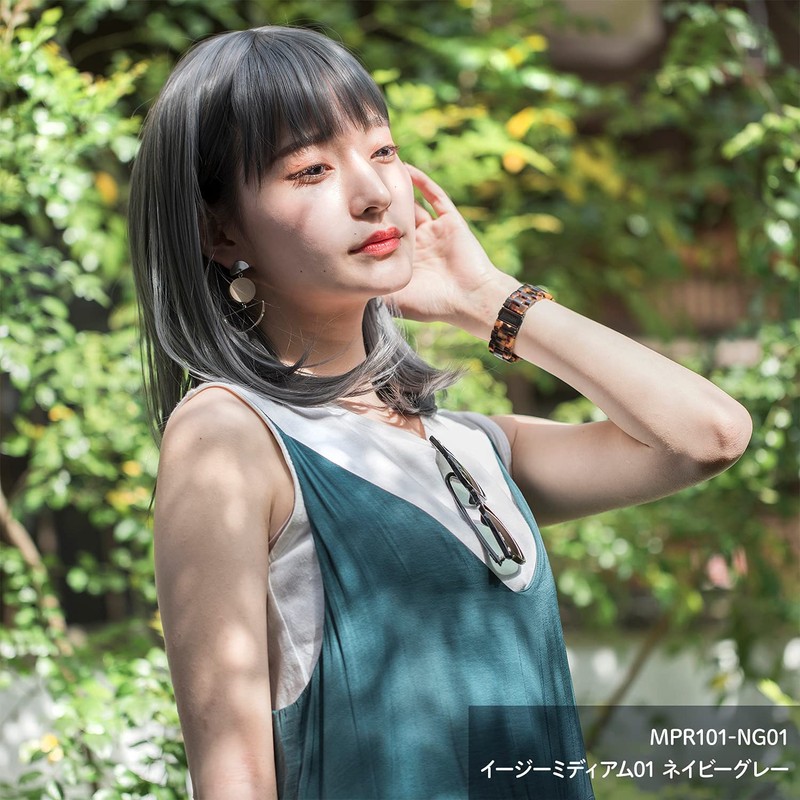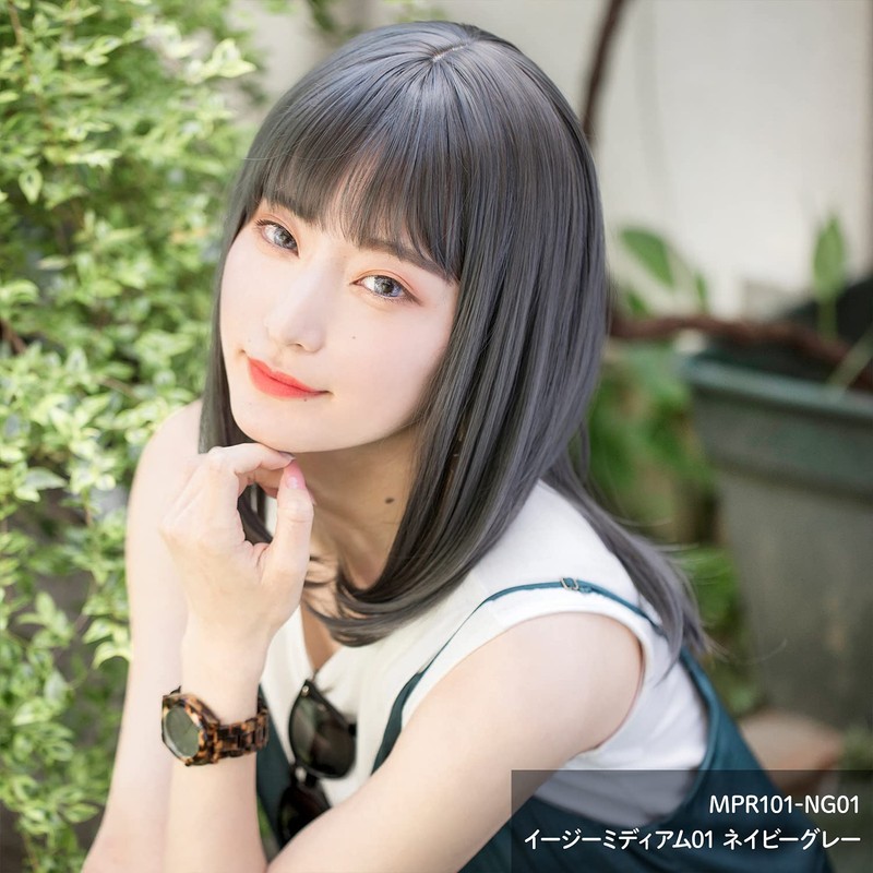 Classe Easy Medium Full Wig, Fashion, Medium, Semi-Long, Natural, Heat Resistant, Wig Net Included, navy grey