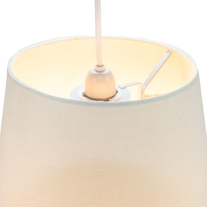 - Traditionally designed circular drum shaped lamp shade suitable for table or pendant.