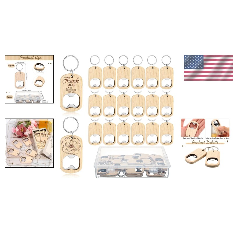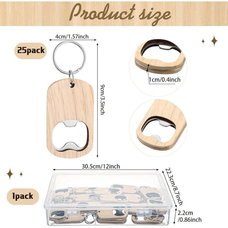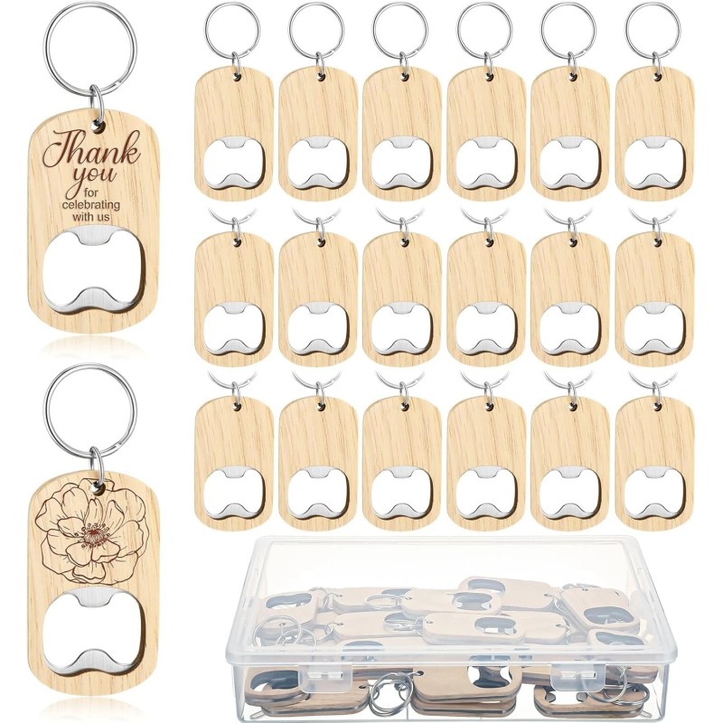 - Comprehensive Set: 25 wooden bottle opener keychains along with a clear storage box.