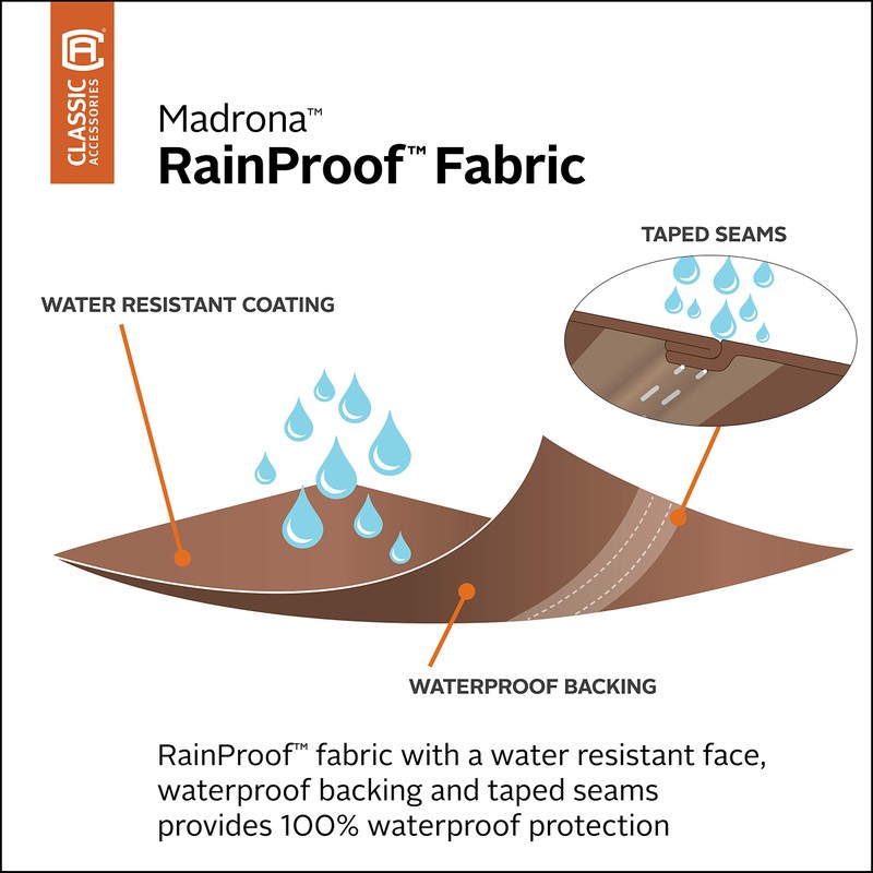 - Our RainProof fabric combines style and durability with taped seam construction to keep water out so that you’re always ready to entertain