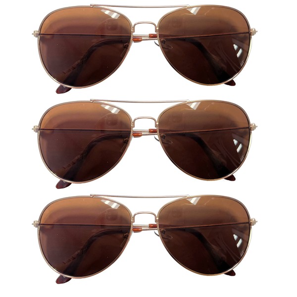 Classic Aviator Brown Lens Sunglasses Metal Frame Gold Color 3 Pack