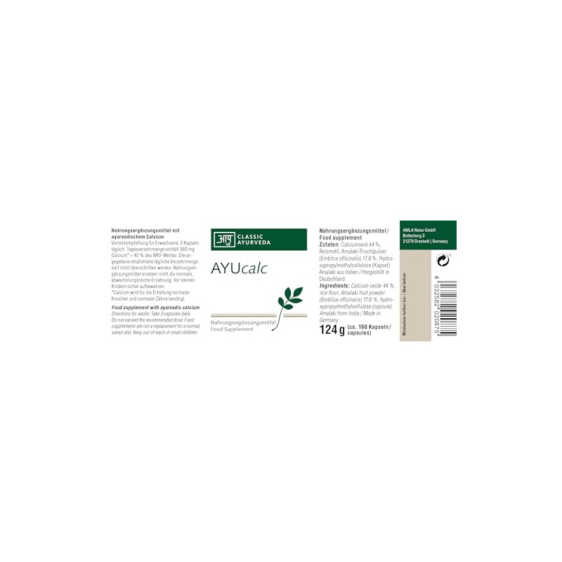 - Optimierte Aufnahme: Enthält Amalaki für verbesserte Bioverfügbarkeit des Calciums (wissenschaftlich nicht bestätigt)