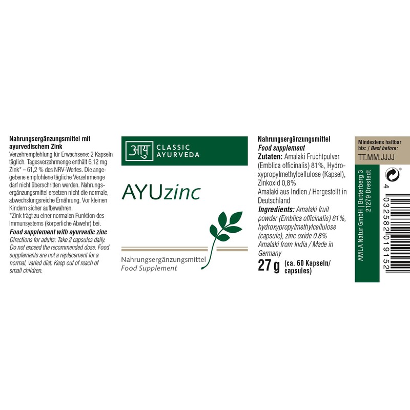 Classic Ayurveda - AYUzinc (capsules) - 27 g (approx. 60 capsules)