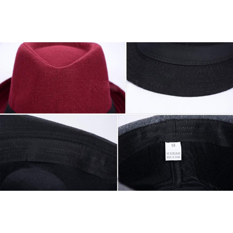 Classic Black Woolen Wide Brim Fedora Hat Felt Panama Hat Trilby Fedora Hat Jazz Cap for Man Women(L)
