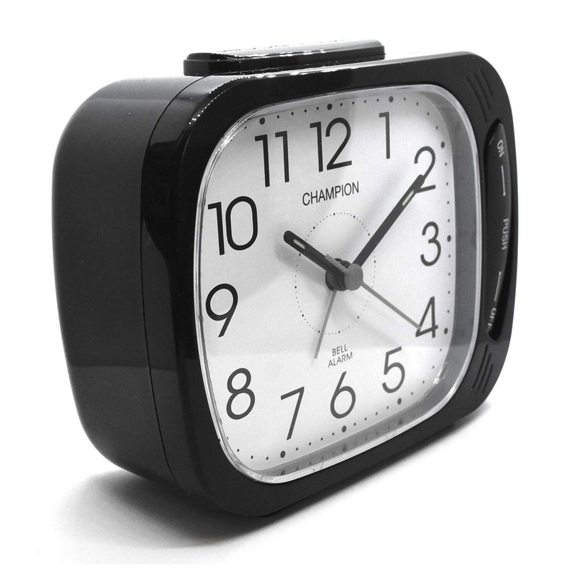 Classic Bold Traditional Black Square Quartz Sweeping Non Ticking Loud Bell Alarm Clock with Adjustable Snooze setting