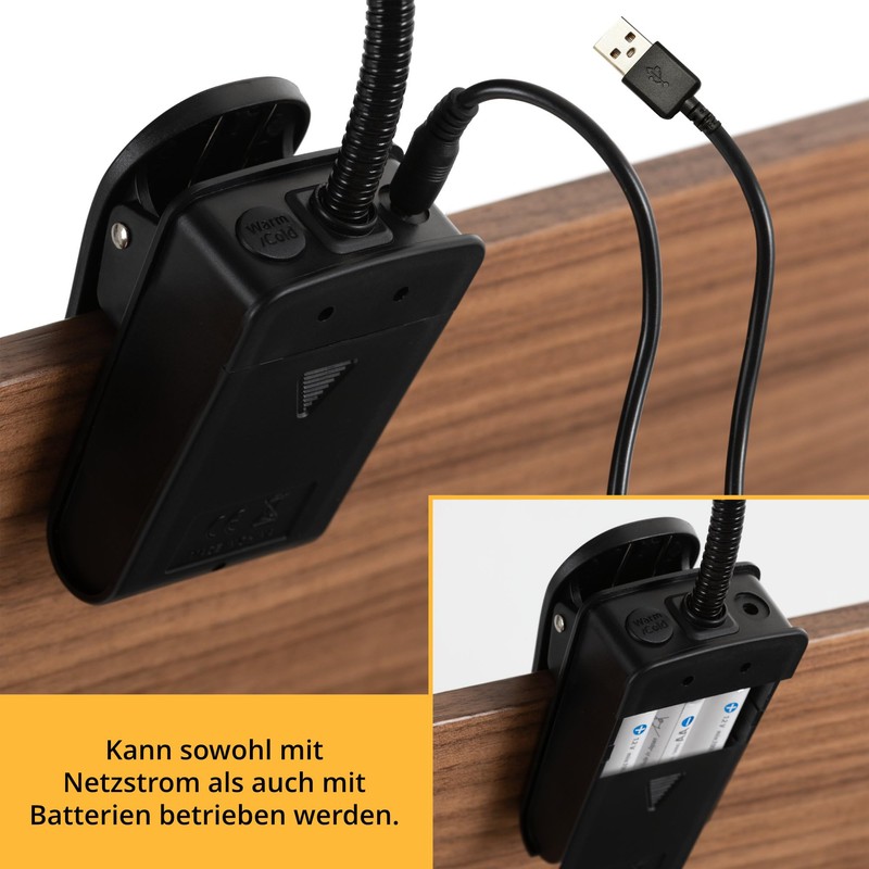 With the practical spring clamp, the light can be attached to music stands, piano rests or tables in seconds.