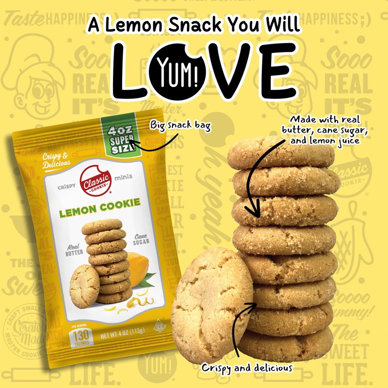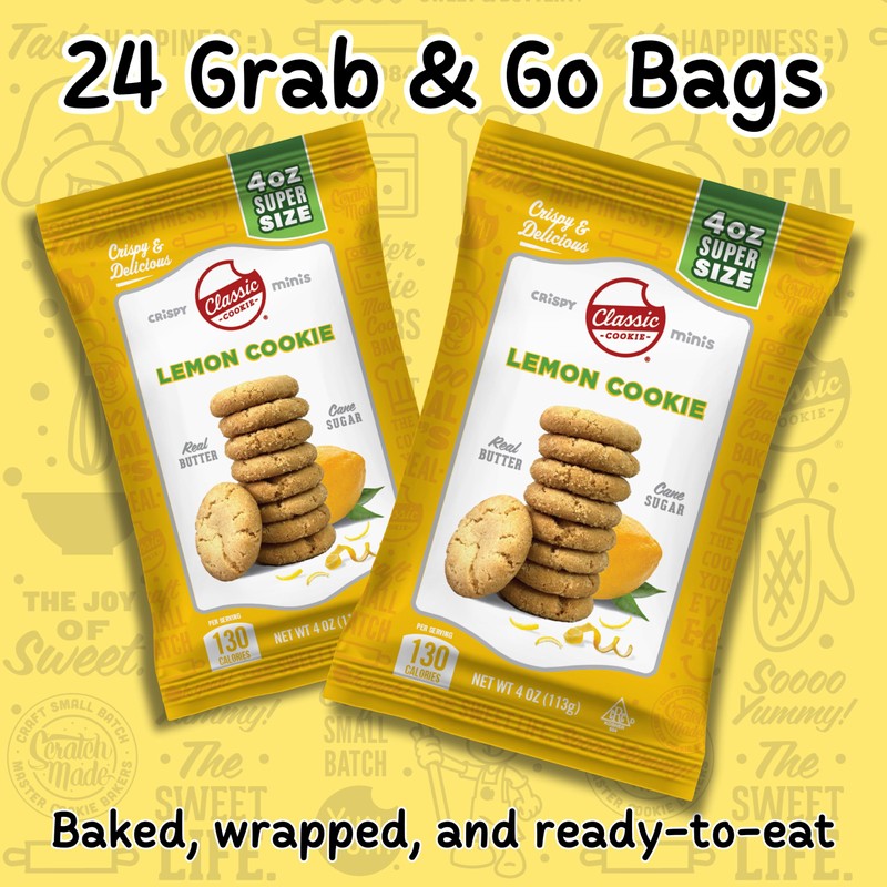 Classic Cookie, Crispy Mini Cookies, Lemon Cookie 4oz Bags, 24 Bags