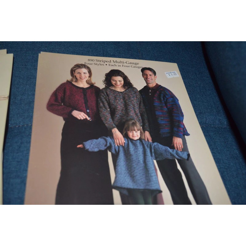 Classic Elite Knitting Pattern 890 Multi Gauge Striped Sweaters