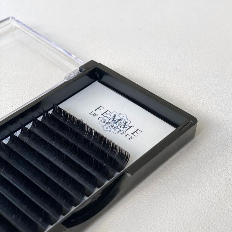 Femme de Caractère eyelash extensions are suitable for "lash to eyelash" and "mixed-hybrid" poses. Their black color is intense and gives a lot of elegance to the look, while remaining natural. Designed by professionals, these eyelash extensions will perfectly meet all your needs and every desire of your customers.