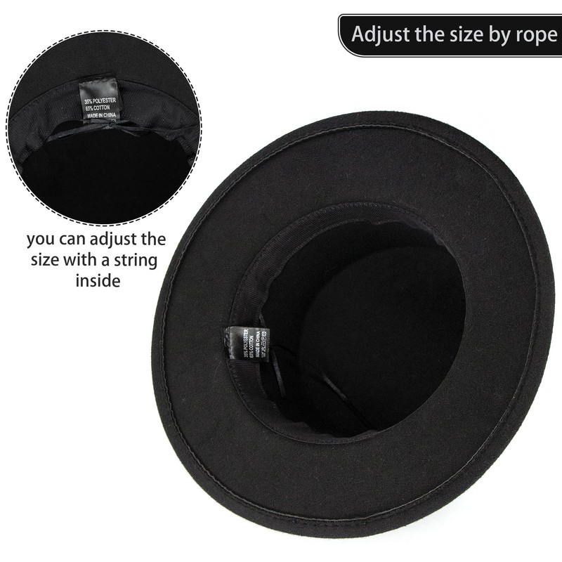 - Adjustable Size: Classic Felt Fedora Hat circumference:M:56-58cm/22-22.83", flat brim width:6cm/2.36",Height:9cm/3.5",suitable for most women and men. Inner adjustable drawstring for a secure fit.