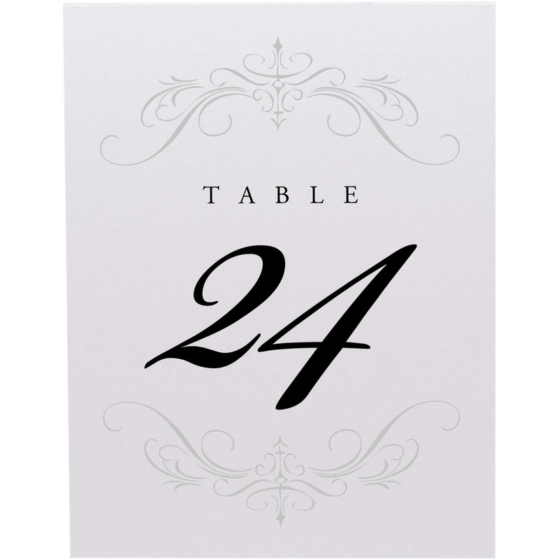 Classic Flourish Wedding Table Numbers, Silver, 1-80, Double Sided, Tent or U...
