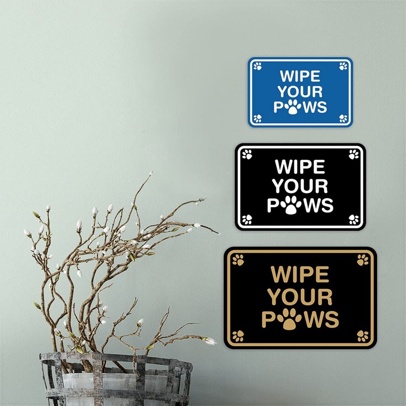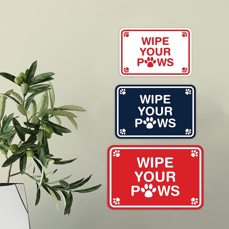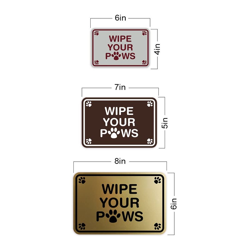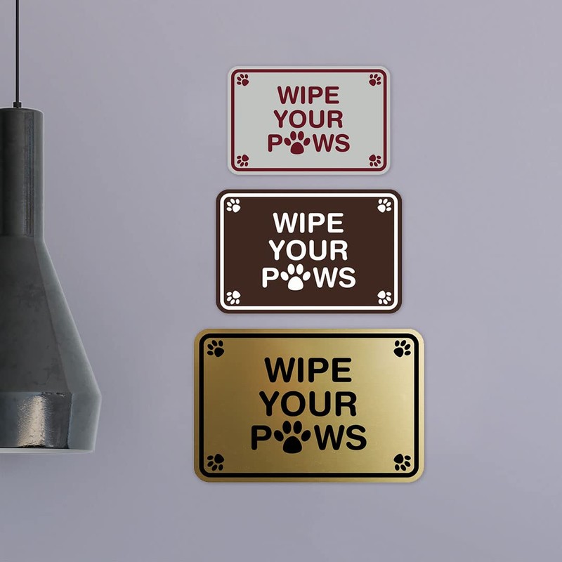 Our Classic Framed Paws, Wipe Your Paws Sign can be attached to the door, wall or window of your home or business. The text and design work on this sign is laser engraved into sturdy plastic. Each sign comes with an adhesive foam backing, allowing them to be attached to any flat surface. Comes in multiple colors. Our Dog and Pet signs are great for your home or business. Fun sign for your home or store to let customers know to wash their hands or to wash their dogs paws before entering.