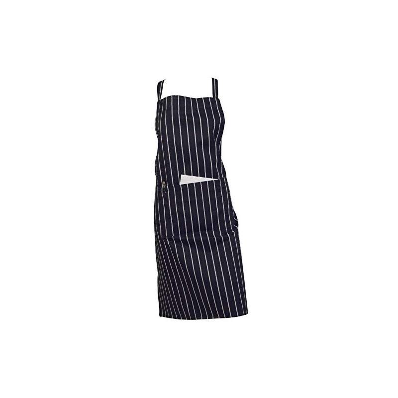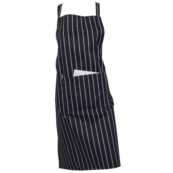 Classic Home Store Woven Stripe 100% Cotton Butchers Apron with Pocket Navy Blue