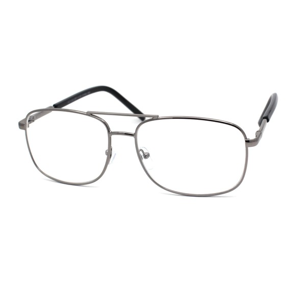 Classic Mens Spring Hinge Rectangle Officer Style Metal Rim Powered Reading Glasses +1.25 Silver