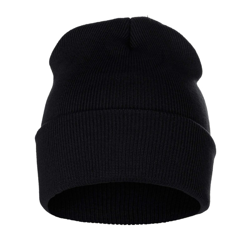Classic Plain Cuffed Beanie Winter Knit Hat Skully Cap, Black