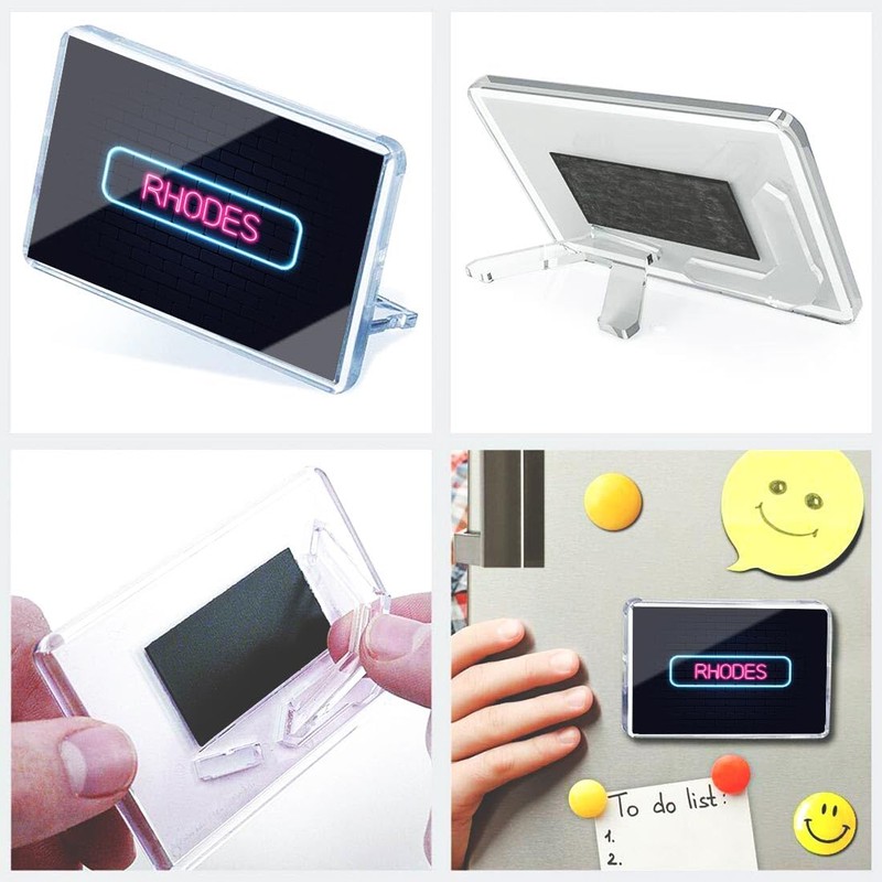 Classic Rectangle Magnet with Stand - Neon Sign Design Rhodes Island Greece - Fridge Locker Office Whiteboard Toolbox #350526