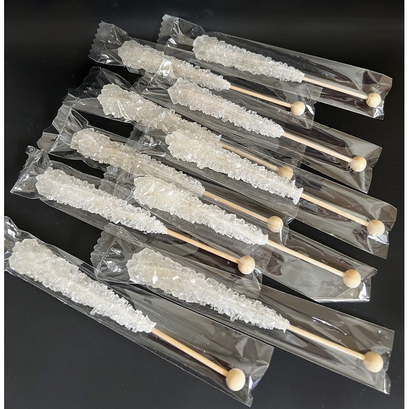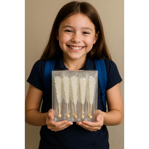 Classic Rock Candy Sticks, Sugar Rock Crystal Lollipops, Individually Wrapped (Pack of 12, Clear White)