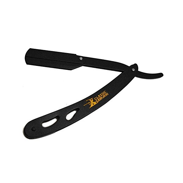 Classic Samurai CS-102 Matte Black Folding Straight Razor, Shavette with 100 Count Single Edge Razor Blades (Black)
