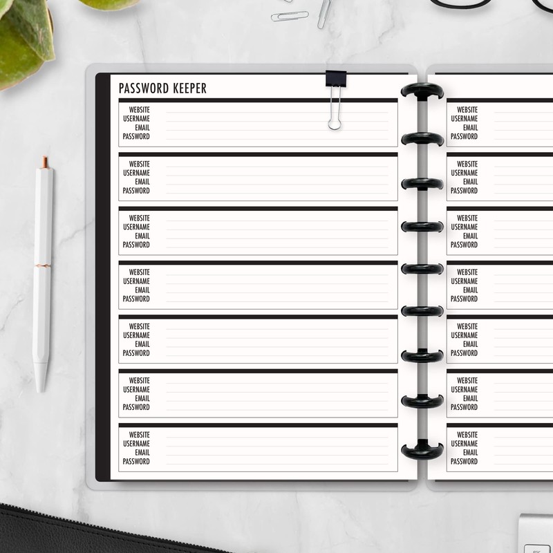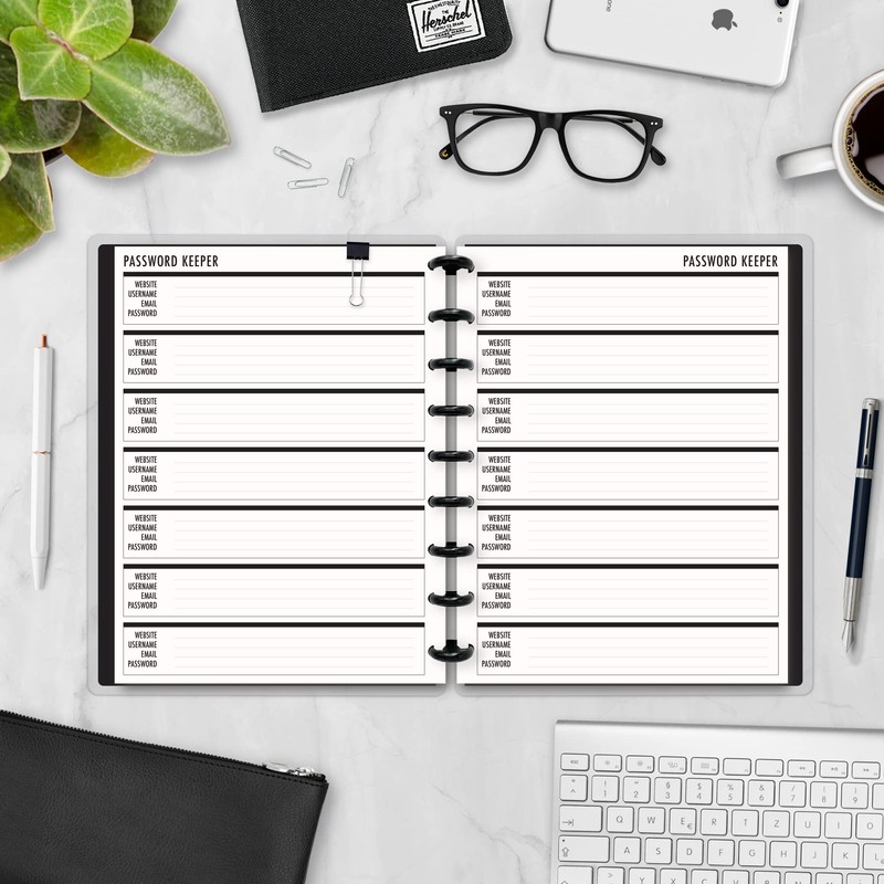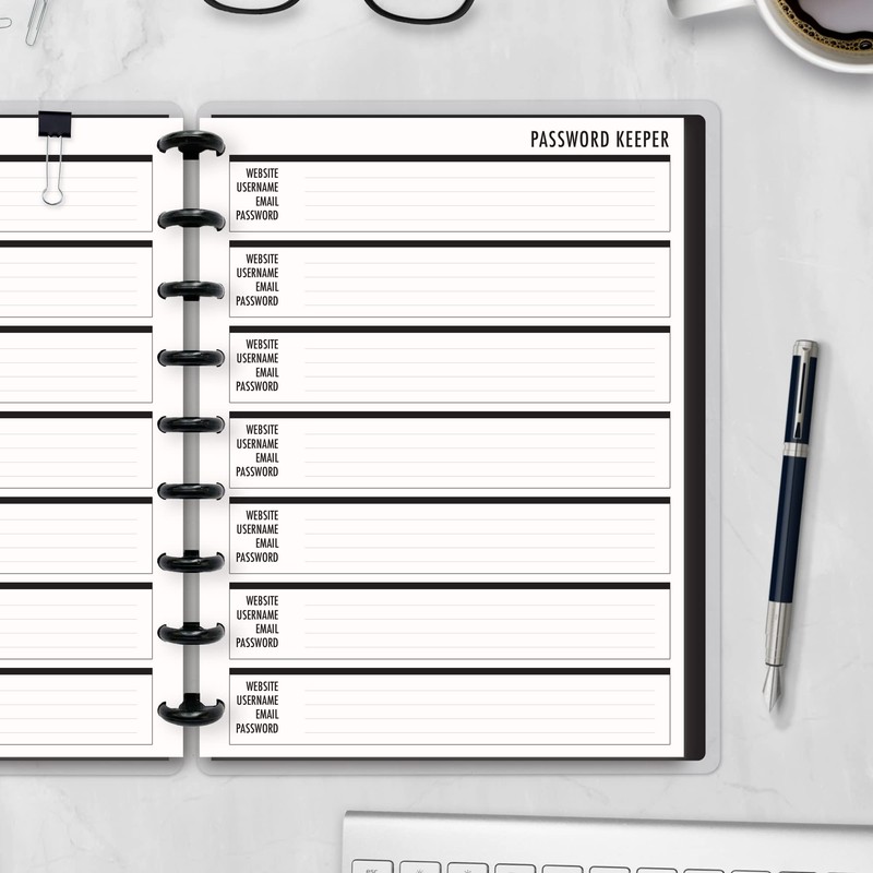 Never forget your passwords again and take the hassle out of trying to find that little piece of paper where you wrote down yet another password. With our Password Keeper planner inserts, your important information will be immediately at your fingertips. You can spend all the extra time you earned looking for those keys you misplaced.