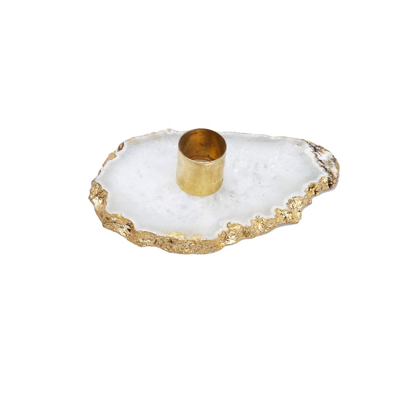 Classic Touch Decorium Flat White Agate Stone Candle Holder with Gold Border