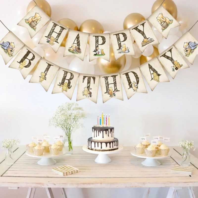 - Charming Classic Design: Celebrate your special day with this Classic Winnie Birthday Banner featuring adorable illustrations of Winnie and friends, perfect for creating a whimsical party atmosphere.
