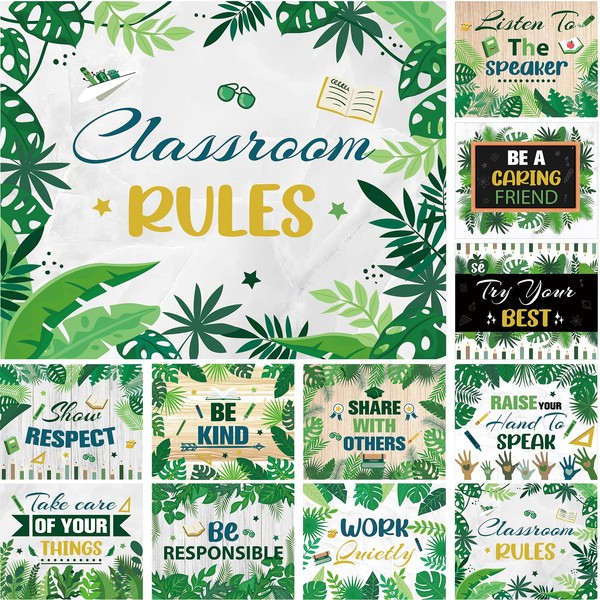 • ✨【Bulletin Board Decoration Set】You will get 12 x classroom rules posters, 2 x banner ribbons, and 40 x double-sided tape dots. You can group these Eucalyptus Classroom Rules posters and hang them on the front door of your classroom or next to the classroom blackboard, or use them individually and stick them on the back blackboard, etc.