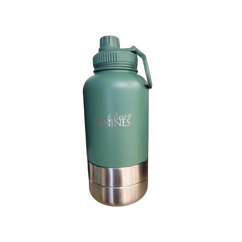 Classy Canines 32oz Insulated Stainless Steel Water Bottle with Detachable Dishes, Leak-Proof Lid, Multiple Colours (Green)