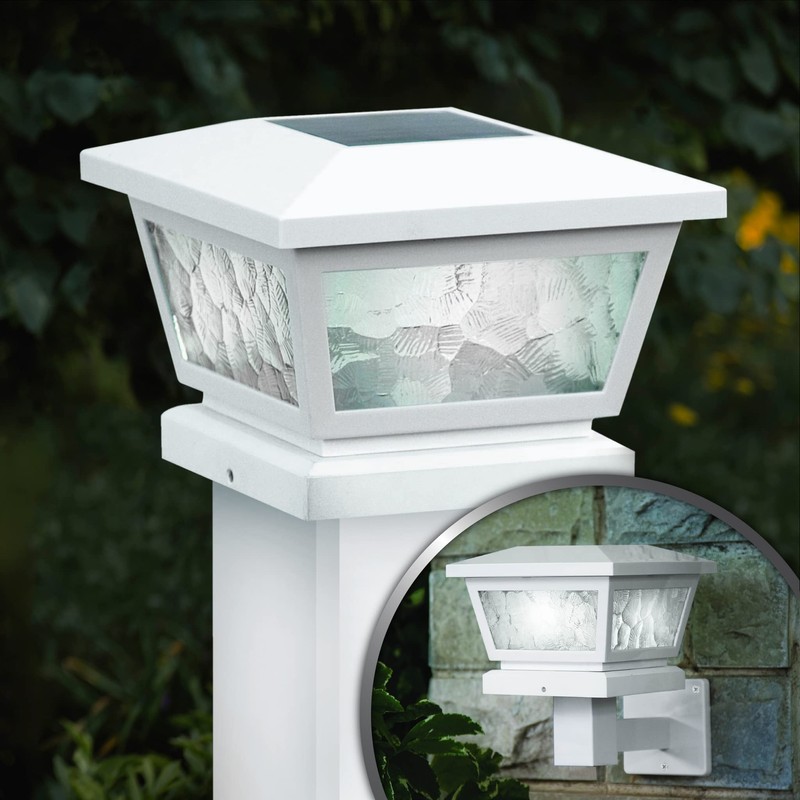 Classy Caps Fairmont Solar Post Cap, FS100W, White - High Performance, Energy Efficient, Weather-Resistant, Durable, Easy Installation, Adapters for 5"x5", 4"" x4, 3.5"x3.5" Posts, Wall/Post Mount