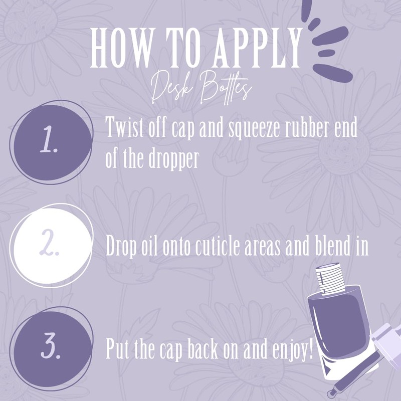 - PERFECT FOR YOUR DESK AT WORK: In need of some hydrating cuticle care while at work? Keep our desk bottle on hand to have easy access whenever you may need. Add a little hydration to your manicure after a long day at the office!