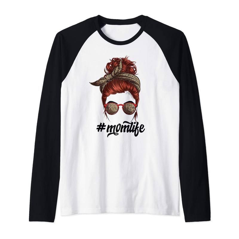 Classy Mom Life with Leopard Pattern Shades & Cool Messy Bun Raglan Baseball Tee
