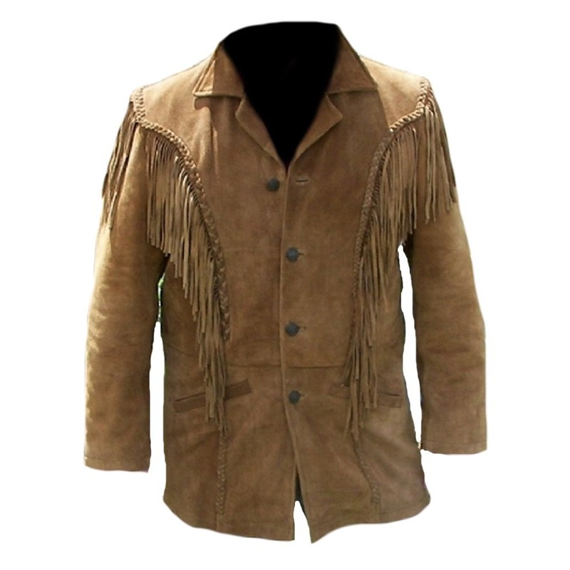 Classyak Men's Western Fringed Suede Coat Suede Brown 3X-Large