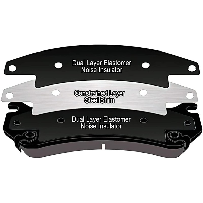 - Anti-rust and Noise free: Using proprietary carbon fiber ceramic materia, highest quality bond between rubber core shims and steel layer resulting in lower dust brake no noise, increased strength, and corrosion resistance;
