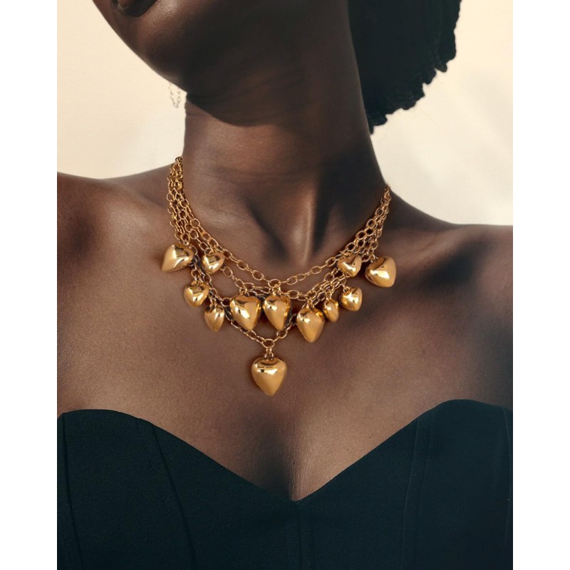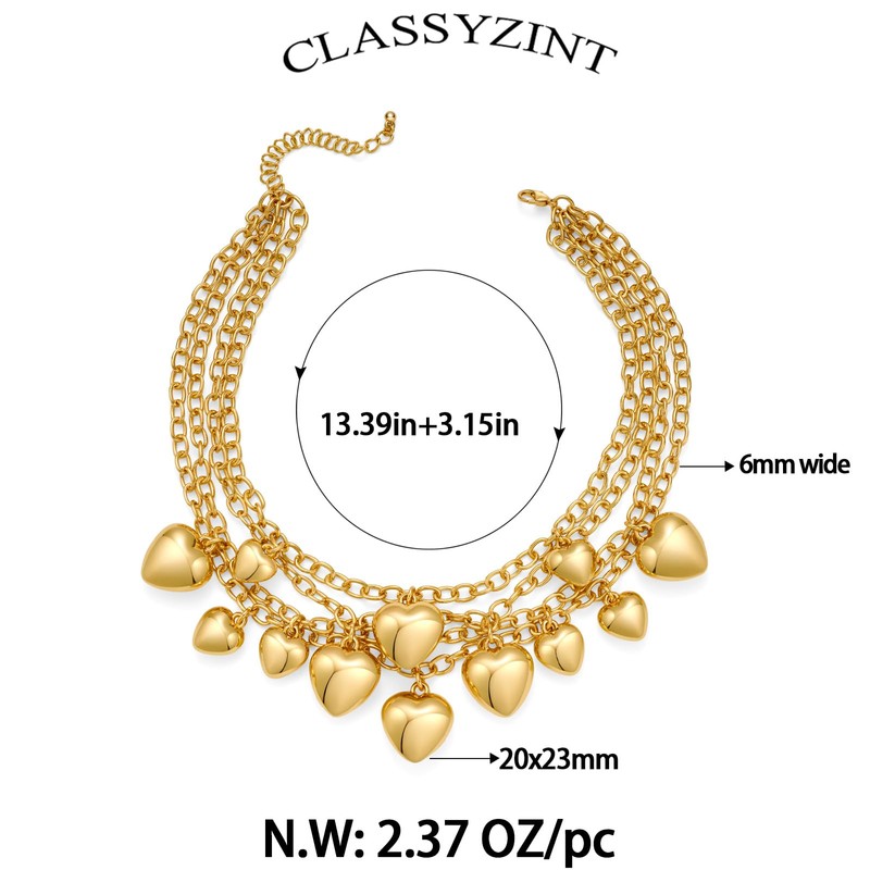 CLASSYZINT 4-Layer Adjustable Gold Heart Pendant Necklace Chunky Layered Chain Choker Valentine's Party Accessories